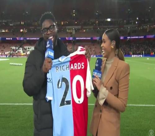 节目直播中,理查兹收到一件阿森纳与曼城的缝合球衣
