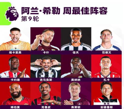 阿兰希勒英超第9轮最佳阵容:姆伯莫入选,卡什、扎卡在列