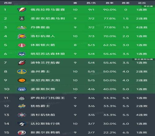 北京时间11月9日,今日的NBA常规赛结束了所有比赛,我们一起看看西部的最新积分榜变动!