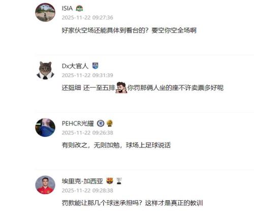另外,还有球迷表示,罚款能让那几个球迷承担吗?这样才是真正的教训!对此,你是如何看待的呢?欢迎在评论区留言、探讨!
