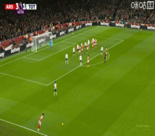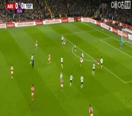 第36分钟,接梅里诺传球后,特罗萨德潇洒转身射门得手,阿森纳1-0领先!